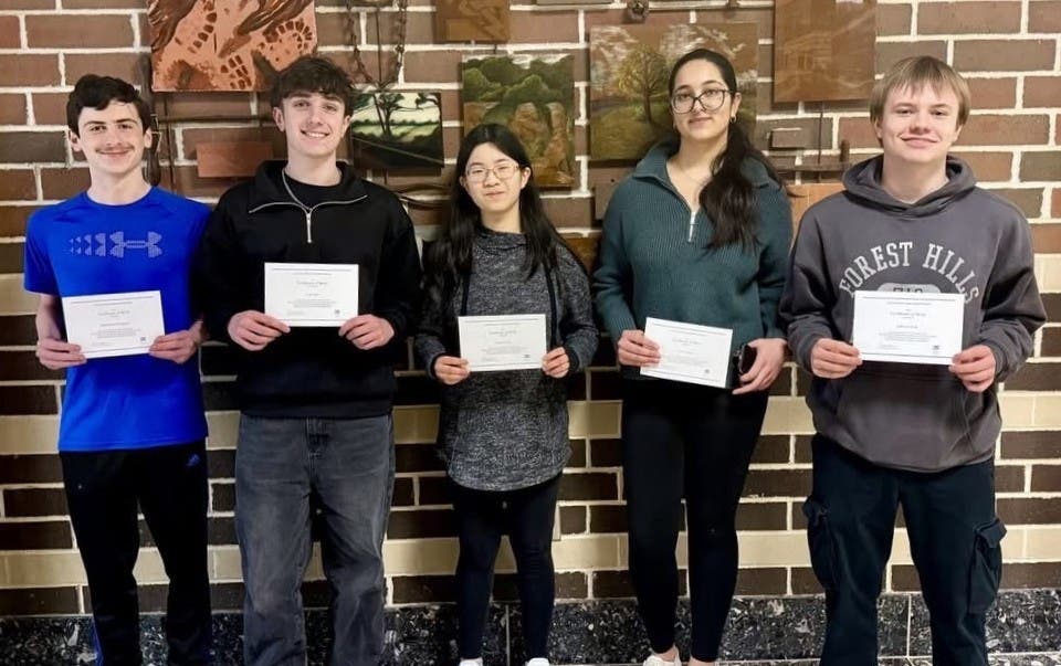 Central Bucks South finalists - Alaina Ahuja, David Dougherty, Julian Grofcsik, Deborah Gym and Lucas Mohr.
