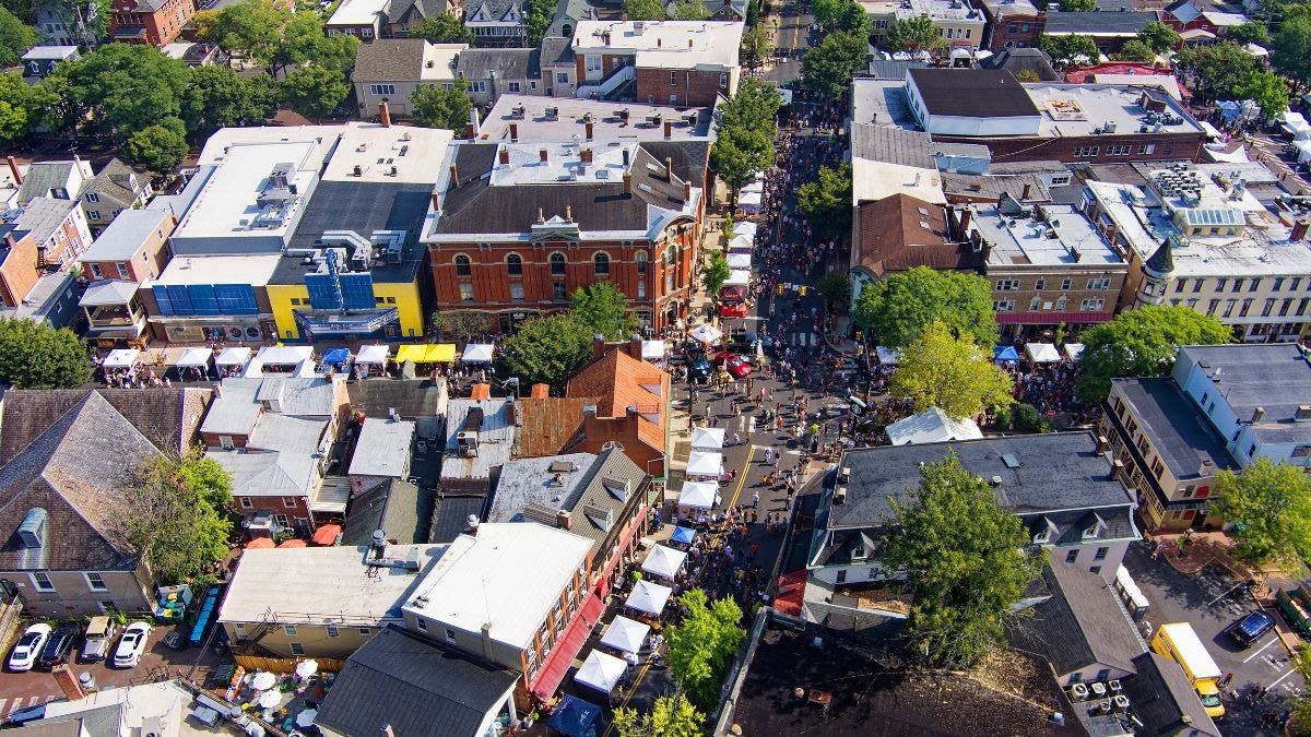 Tents lining Main and State streets at the Doylestown Arts Festival. (Discover Doylestown)