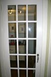 Two of our favorite parts of this renovation are the door and light fixture we added. These two, totaling only $200, were our biggest splurge. The room was formerly closed off with a farm door, with a great black vintage handle. So we salvaged the handle and put it onto a french door from Lowes, painted white to match the home interior woodwork. The door and track light add dimension to the room, allowing visitors a peek inside. You can also spy on the kids when they are sneaking candy.