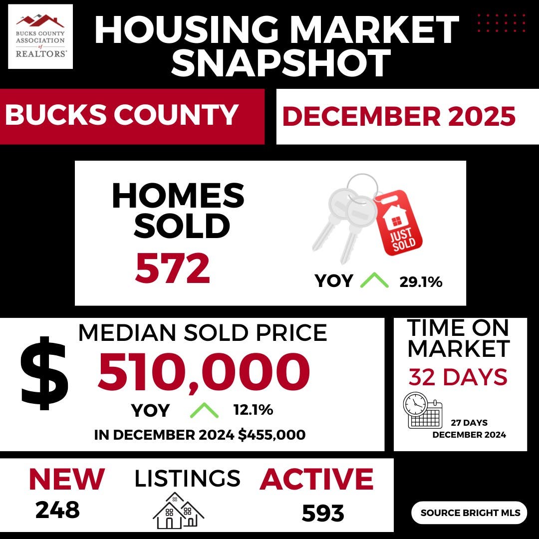 “December is always a month where the market takes a breath, and that’s exactly what we’re seeing,” said Christy Manetta, 2026 President of the Bucks County Association of Realtors. “Home values remain strong, which speaks to the long-term appeal of Bucks County. At the same time, the slower pace gives buyers a chance to explore options without the urgency we often see earlier in the year.”
