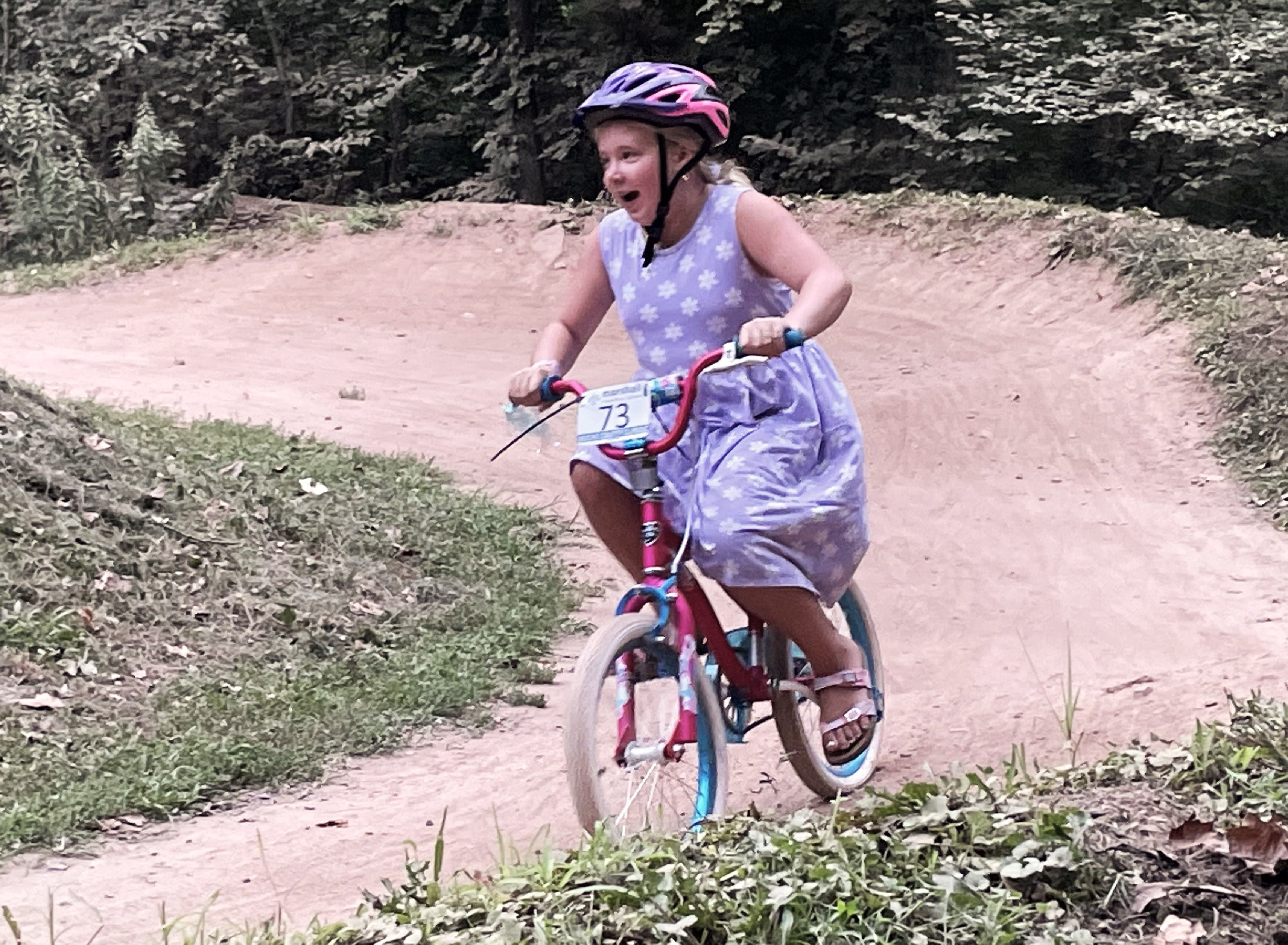 Youngsters hit the mounds, kicking up dust as they whipped around the track behind Fanny Chapman Pool. You could see the potential as they rode up one side of the hills and down the other generating momentum by “pumping” their bodies up and down.