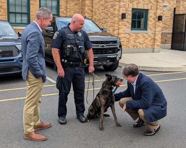“The Central Bucks Regional Police canine officers, Baron, Odie and now Granite, are an irreplaceable asset to our boroughs and the community at large,” said Noni West, mayor of the Borough of Doylestown. “Through their dedication to community, Sen. Santarsiero and Rep. Brennan have funded the K9 vehicle critical to the work of Officer Granite and his partner Officer Maloney. Thank you so much.”