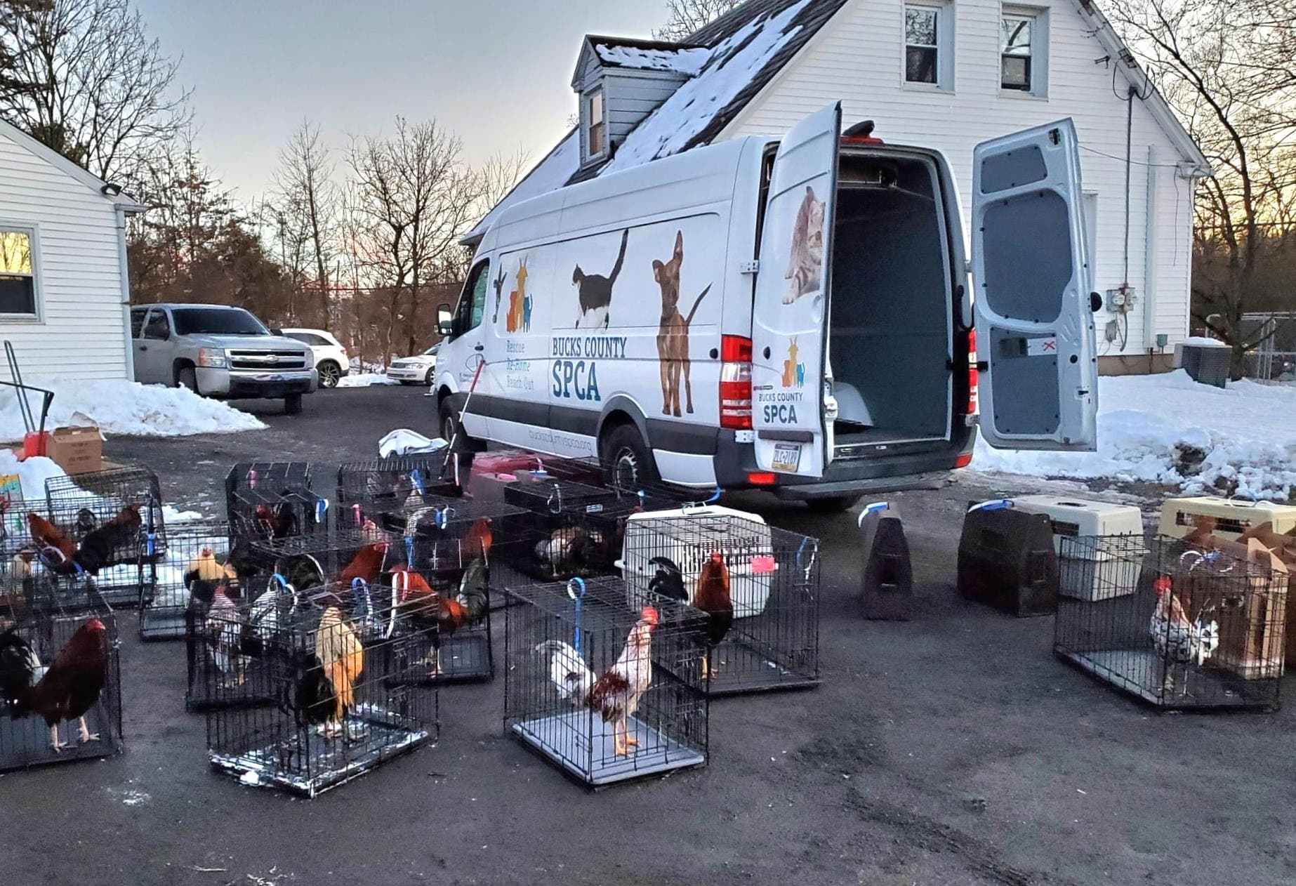 The Bucks County SPCA responded to the scene to rescue the roosters that were still alive. (Bucks County SPCA)