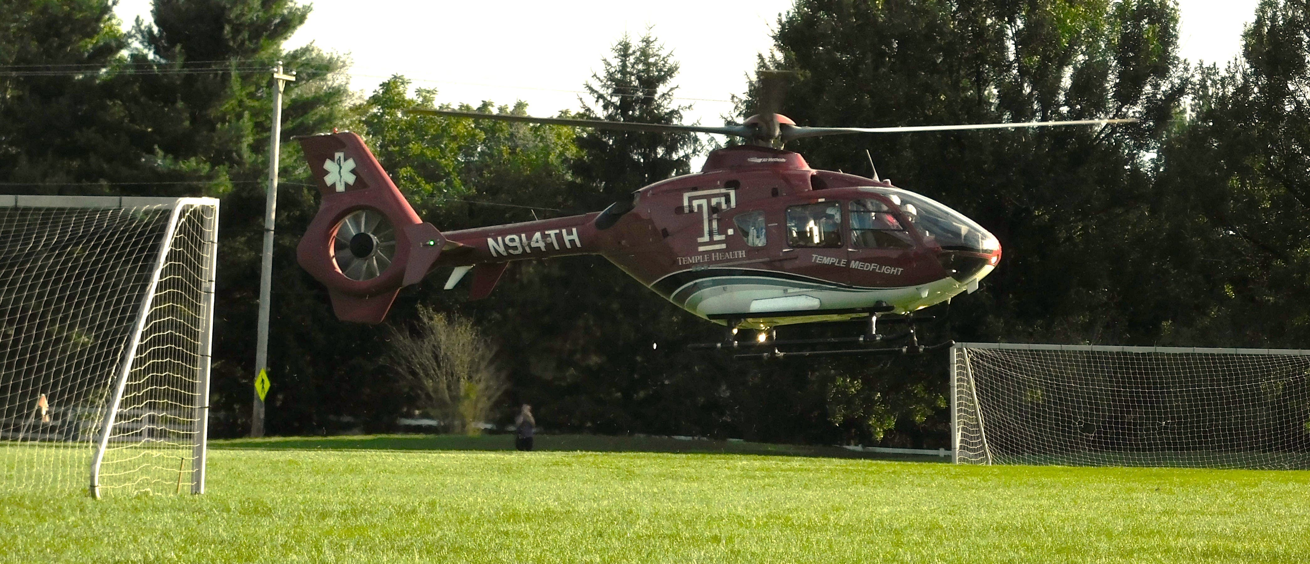 As Sylvester showed off his car, a Temple MedFlight helicopter prepared for takeoff in a nearby soccer field after a successful visit. Parents, grandparents, and children checked out the inside and outside of the helicopter before it had to leave.