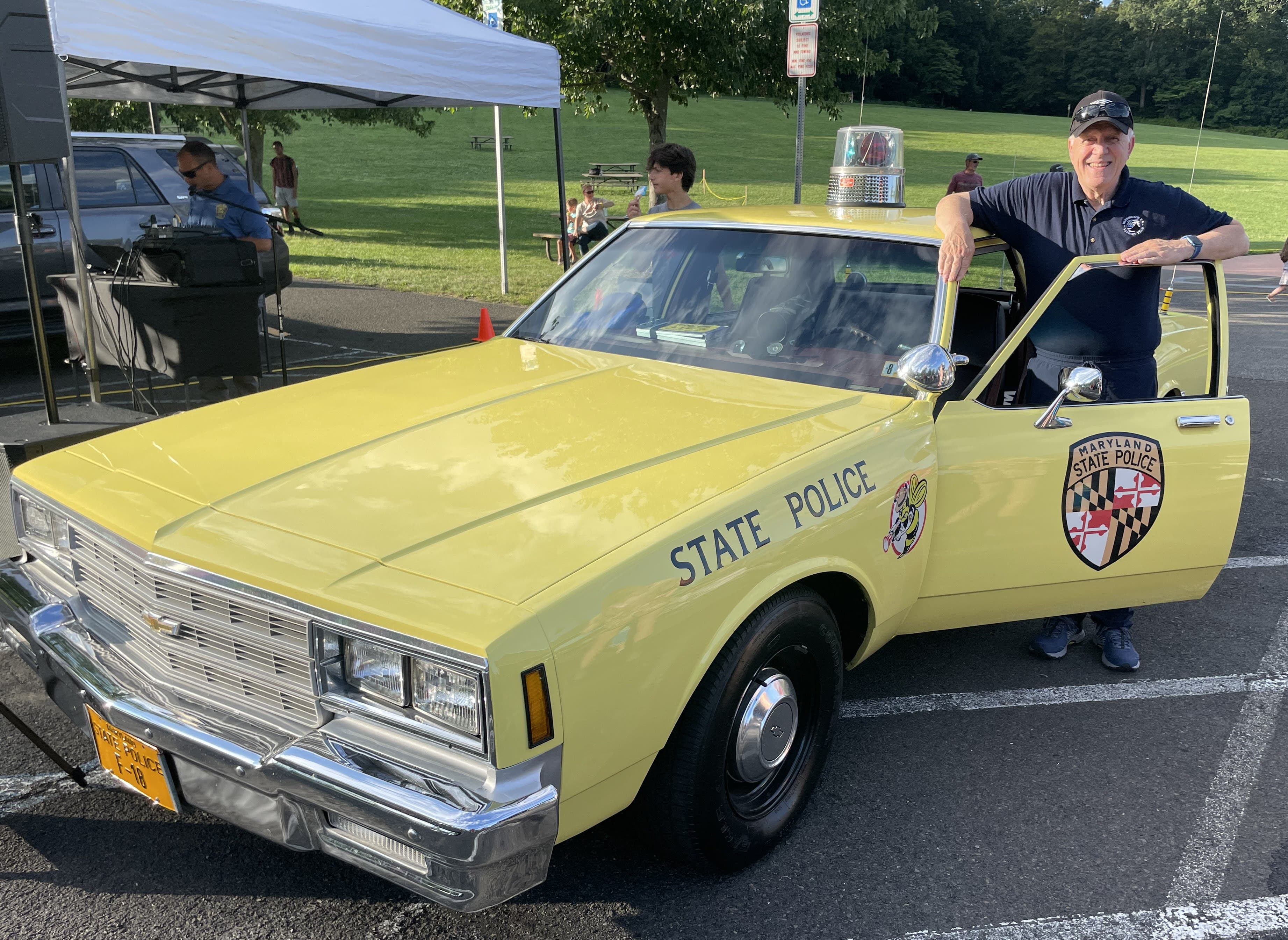 Back for another Night Out was Warrington Township auxiliary police officer Ken Sylvester who was showing off his 1983 yellow Maryland State Police car. "This was the last yellow one in service," he said. "Everyone said it looked like a taxi cab." Maryland switched over to green and gold in 1984.