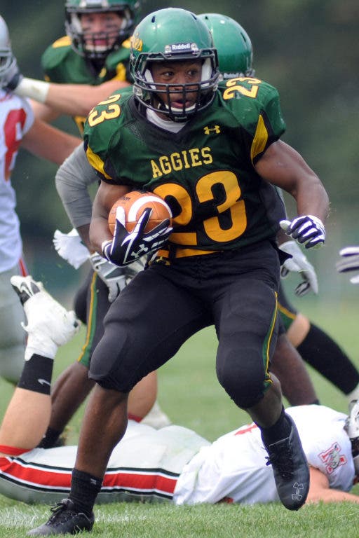 The ensuing possession saw Norwich face a third-and-15 from its own 22 when quarterback Kris Sabourin kept the ball and raced down the left sideline 70 yards to the Delaware Valley eight-yard line. The big play eventually led to the touchdown on the halfback pass and the 21-10 score. The Aggies responded quickly then ran away in the second half for the big victory.