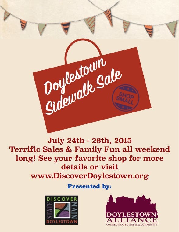 Downtown Doylestown will host it’s 6th Annual Sidewalk Sale the weekend of July 24th through 26th, organized by the Discover Doylestown Committee. Dozens of local independent shops and businesses will offer a variety of unique items, along with summer special offers. Shoppers are invited to support their favorite local small businesses in Doylestown, while they find terrific sales, and family fun all weekend long! Checkout www.DiscoverDoylestown.org for updates.