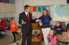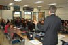 At Central Bucks West High School, he was greeted by the jazz band and welcome signs.