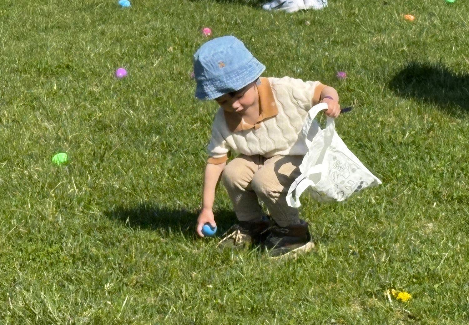 Highlighting the morning was a series of age group hunts, each beginning with a mad dash across the grass. Those who found a gold coin inside their egg could redeemed them for prizes.