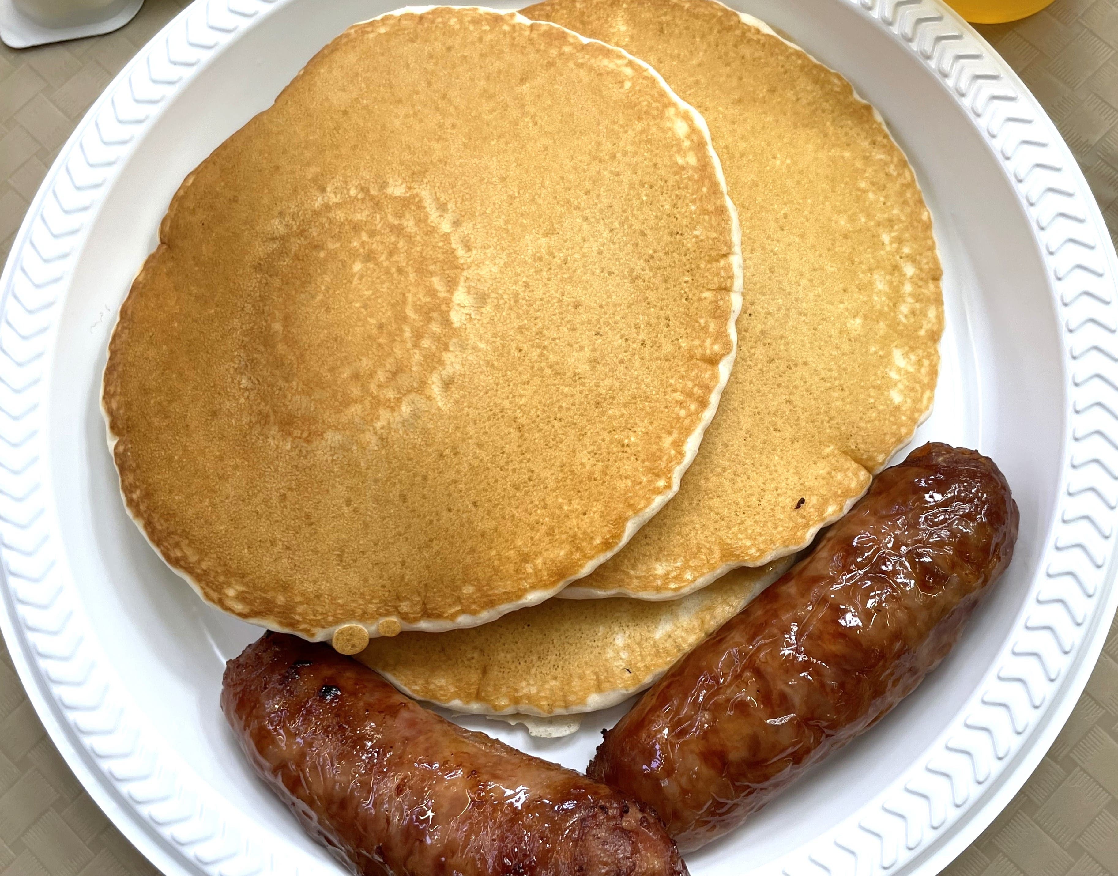 Try between 4,000 and 4,500 pancakes along with a corresponding number of sausage links.