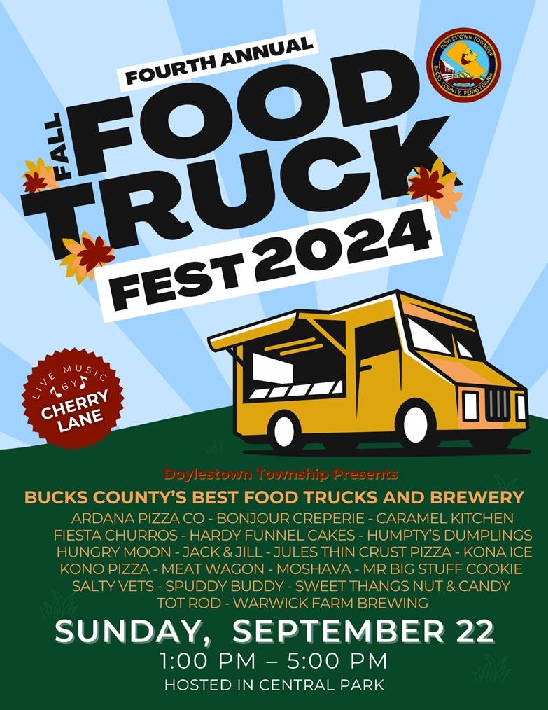 DOYLESTOWN TOWNSHIP, PA — A banquet of food trucks will roll into Doylestown Township on Sunday, September 22 for the township’s annual Fall Food Truck Fest.