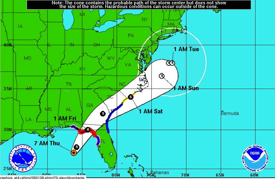 The storm is expected to become a hurricane, bringing winds exceeding 70 mph, when it hits Florida this weekend. But wind speeds will be half that if Hermine gets here, reducing it to a tropical storm, forecasters predict.