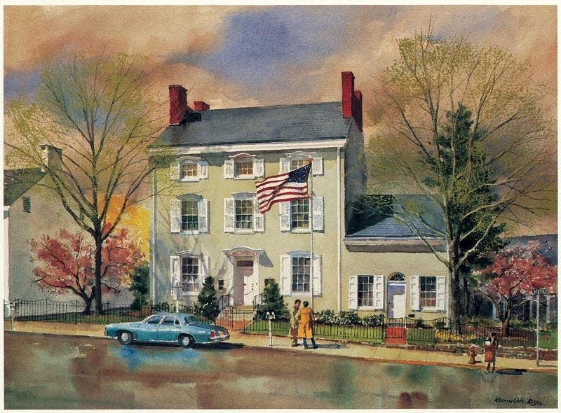 Today, the Federal-style building is listed on the National Register of Historic Places.
