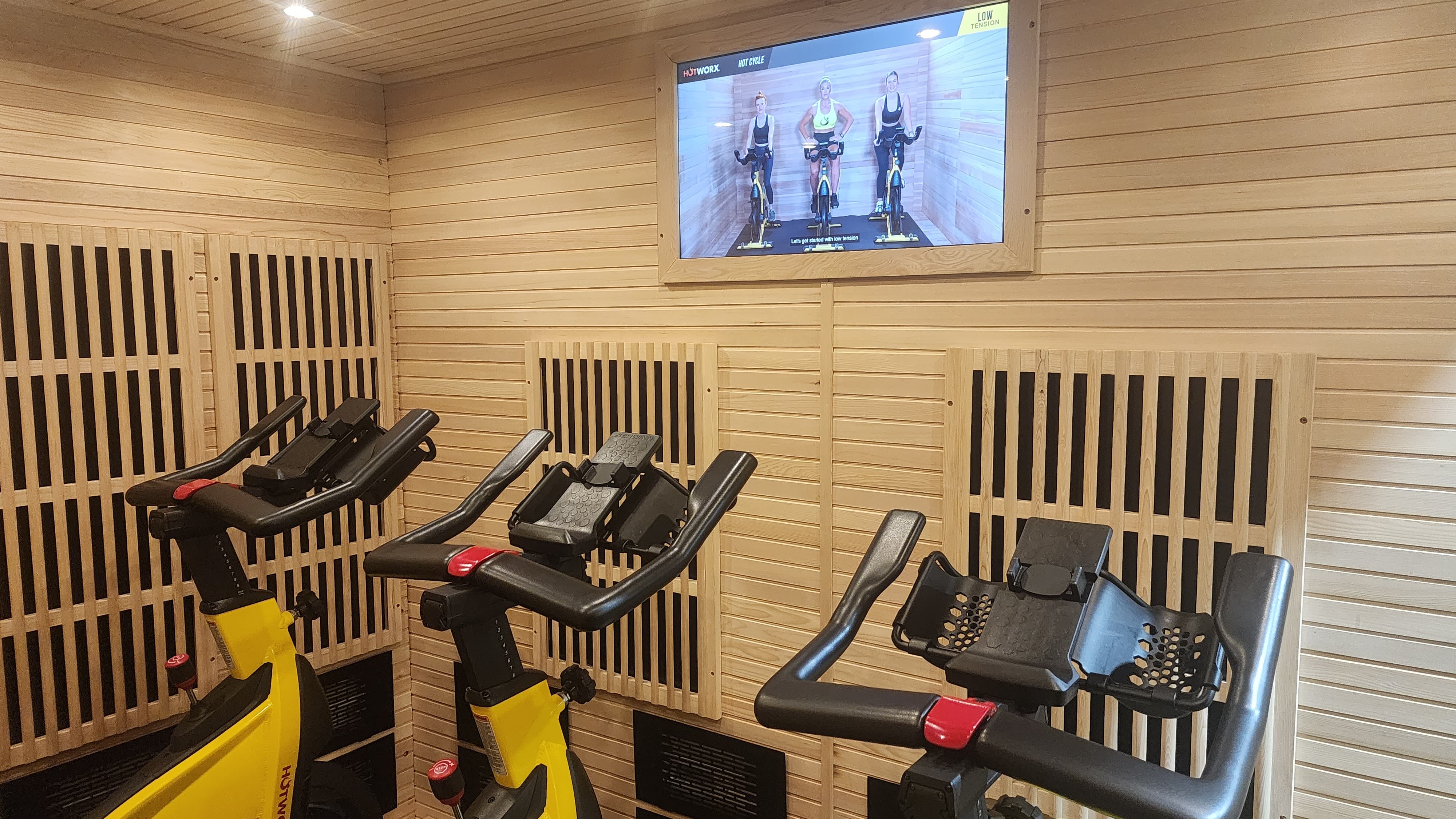The studio also offers both isometric exercises (yoga, pilates, barre, and more) and high-intensity interval training (HIIT) exercises (cycle, rowing, total body) suitable for members of all fitness levels in semi-private infrared heated saunas that are 9-foot-by-7-foot in size.