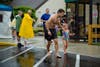 But the rain did suceed in washing out the biking category of the race, turning the triathlon into a duathlon.