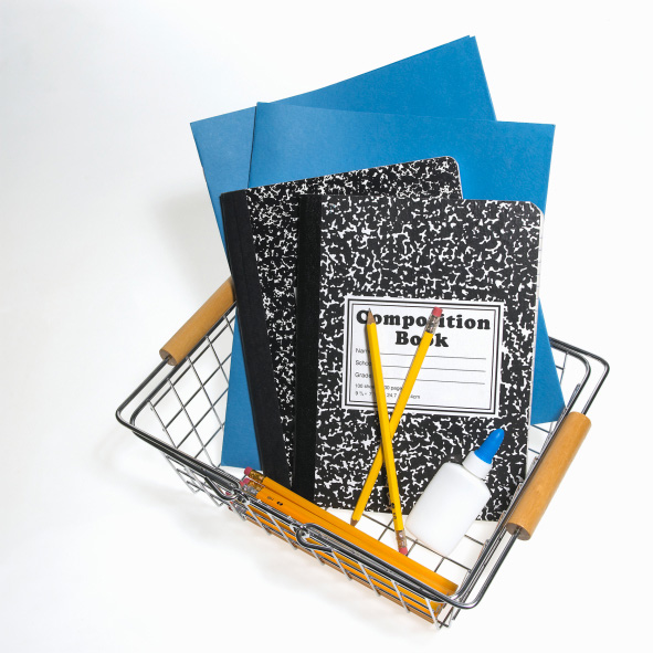 Items needed include backpacks, markers, glue sticks, scissors, crayons, book covers, marble composition books and loose leaf notebook paper.