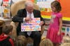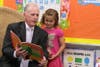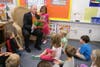 At Linden Elementary, in Doylestown Borough, this week, Laws sat in a wicker chair and read "Chicka Chicka Boom Boom" to Mike Wolf's morning kindergarten class.