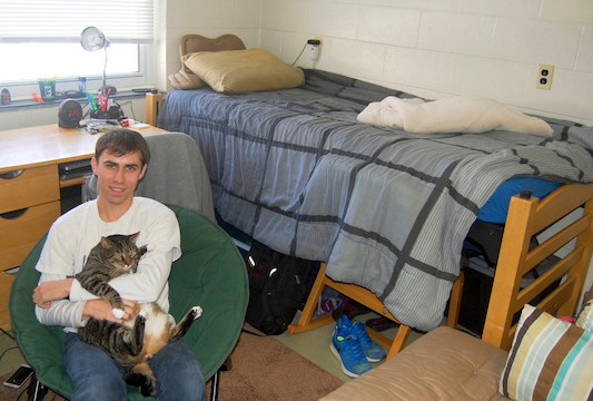 “It’s a nice stress reliever when you get to come home to your pet like you would at home,” said Nate Borger, a wildlife conservation and management major. Borger brought his cat, Posh, with him to college.