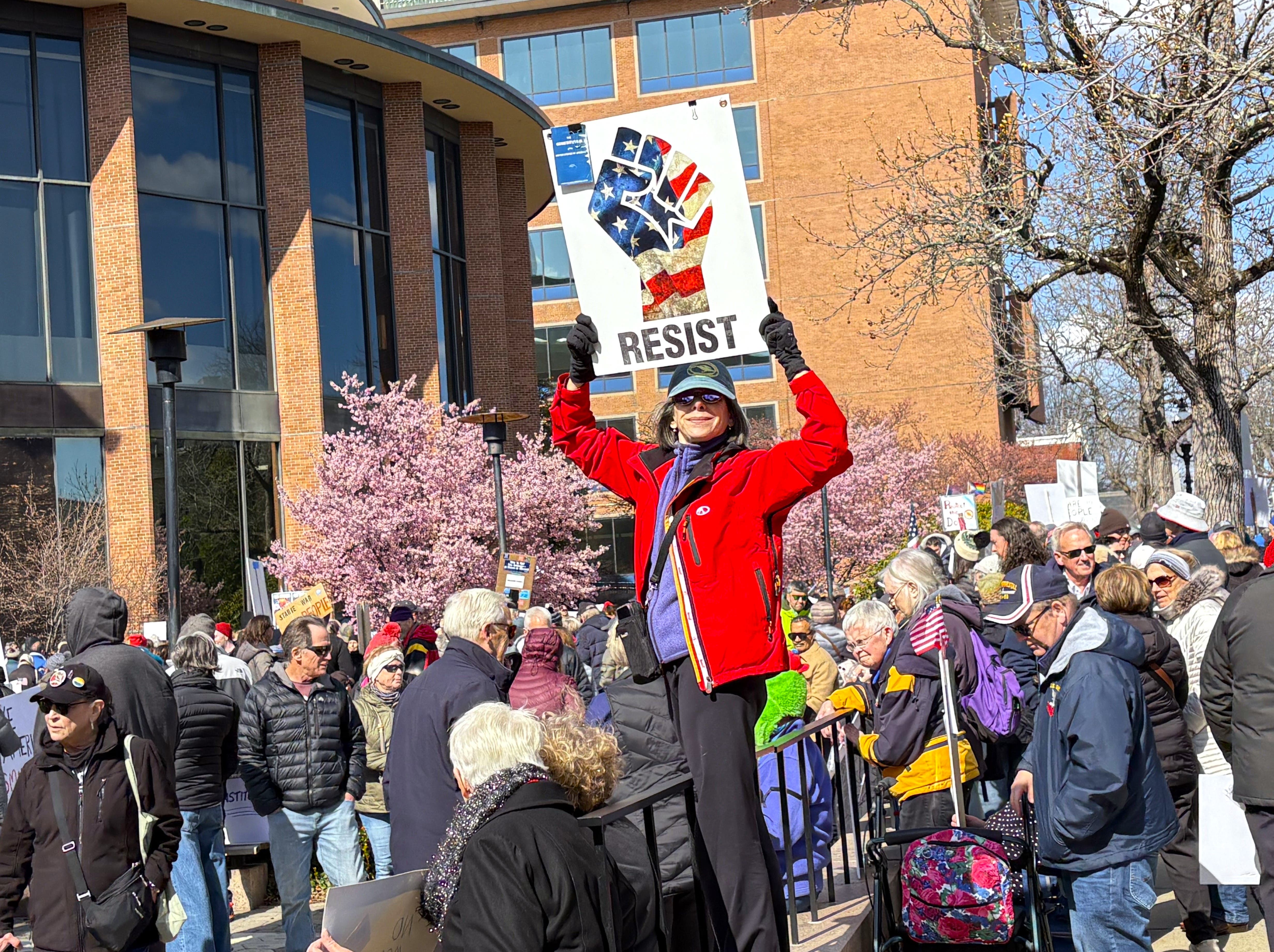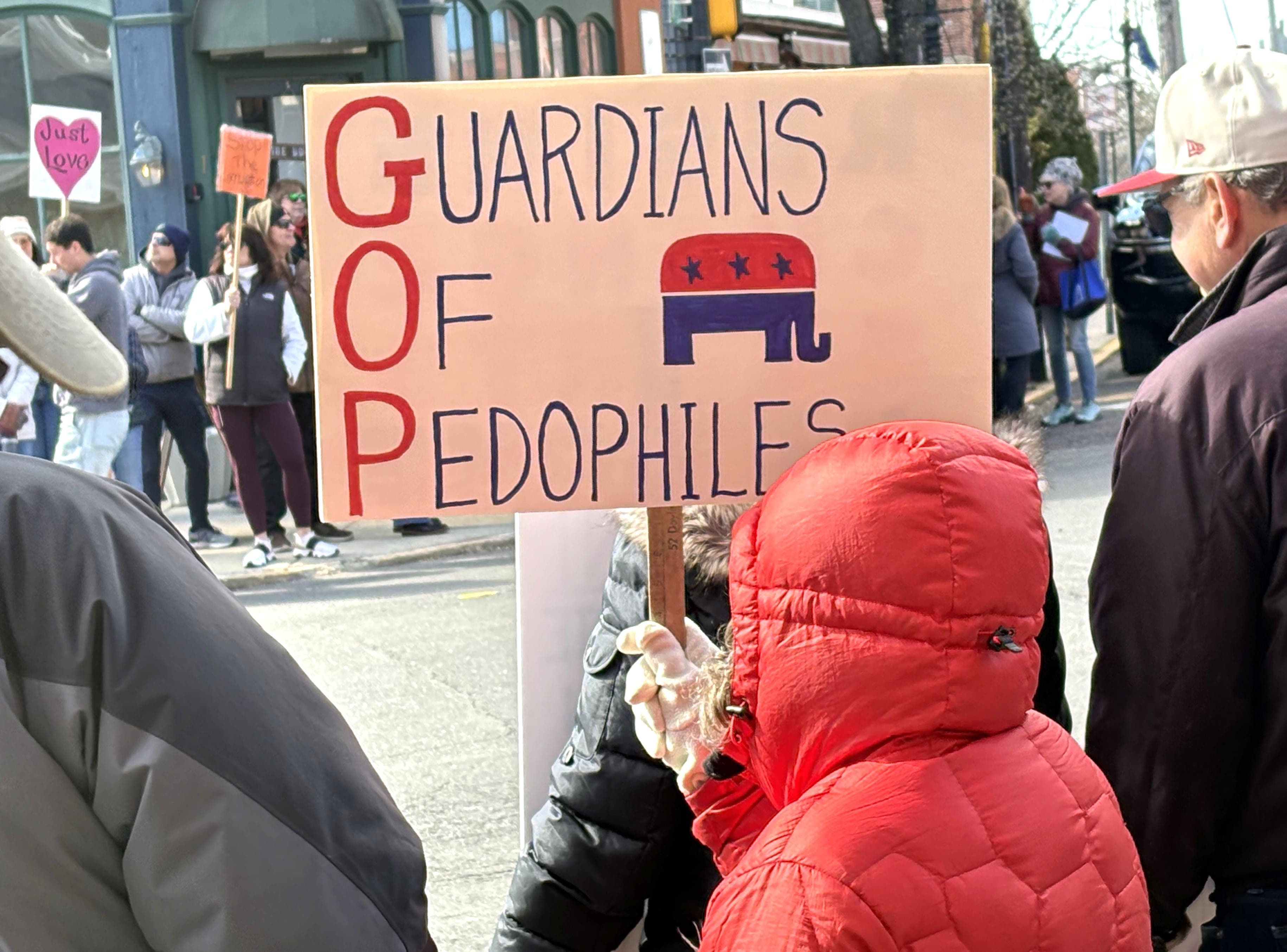 DOYLESTOWN, PA — A crowd estimated at more than 1,o00 people took to the streets in Doylestown on Saturday, chanting and waving signs against President Donald Trump and his administration.