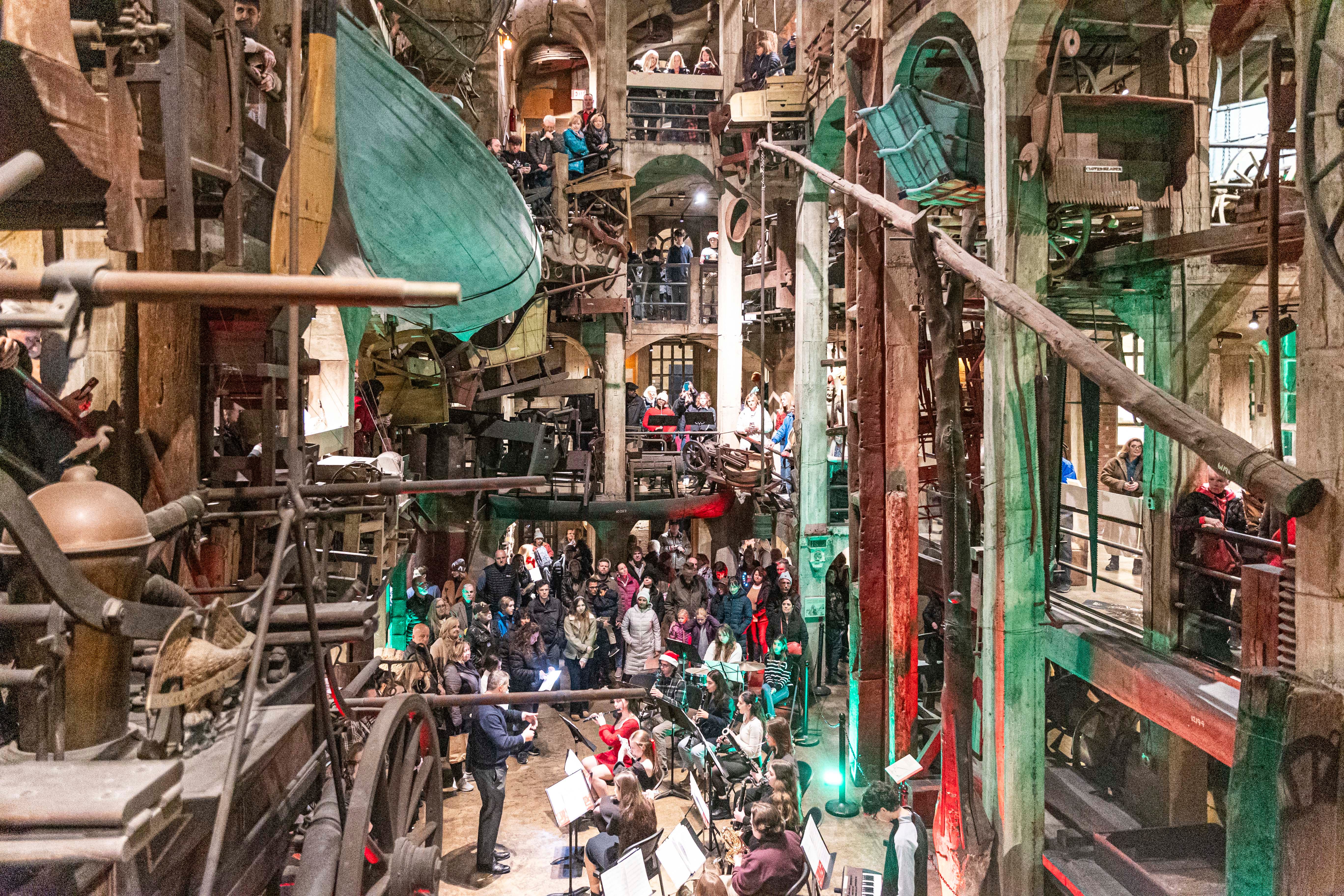 The concrete walls of the historic museum will be filled with the sounds, scents and scenes of the holidays during an evening of free musical performances, family activities, and a visit with Santa.