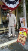 Known as "Jamie," Bradley draws on his experience acting with such local groups as Town and Country Players to portray Mercer at local events for years.