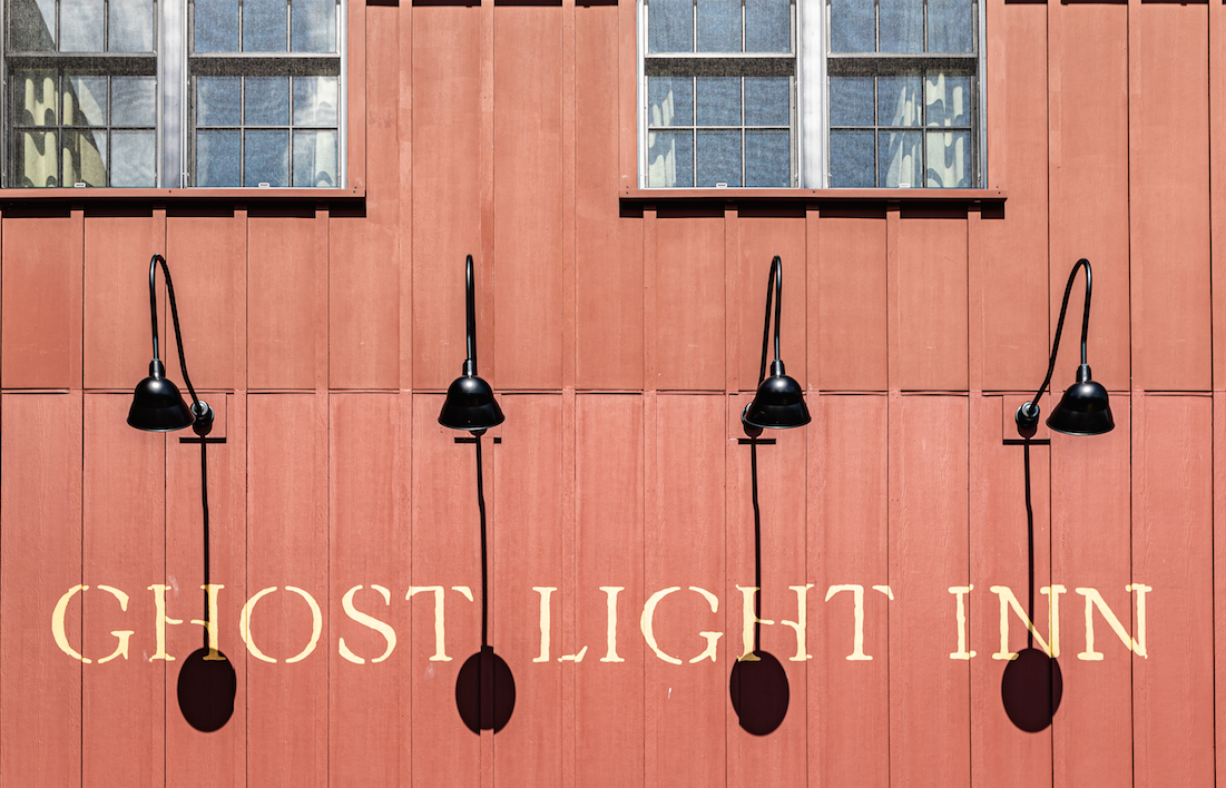 The inn is named after the theatrical tradition of the ghost light, a standing lamp that is left burning on the stage when not in use, providing safety for cast and crew. "As the superstition goes, they also appease ghosts by affording them light to perform onstage when the theater is dark. The theme of the ghost light runs throughout the inn – in lobby areas, rooms and in photographs of Bucks County Playhouse," according to information provided by the inn.
