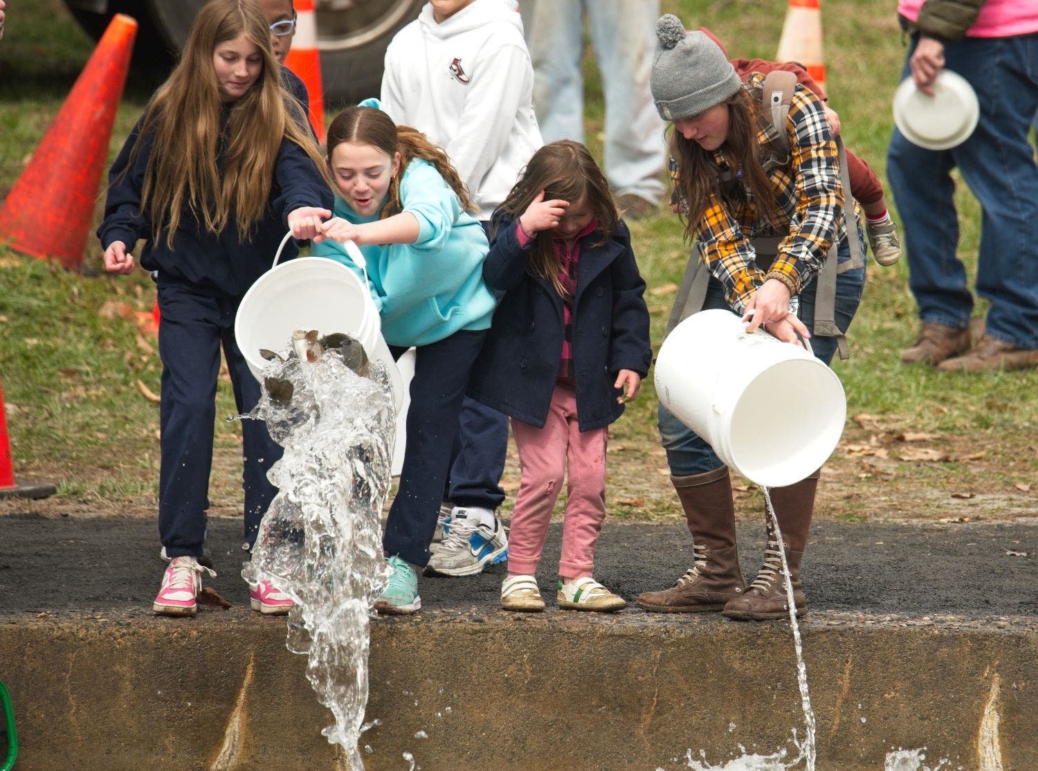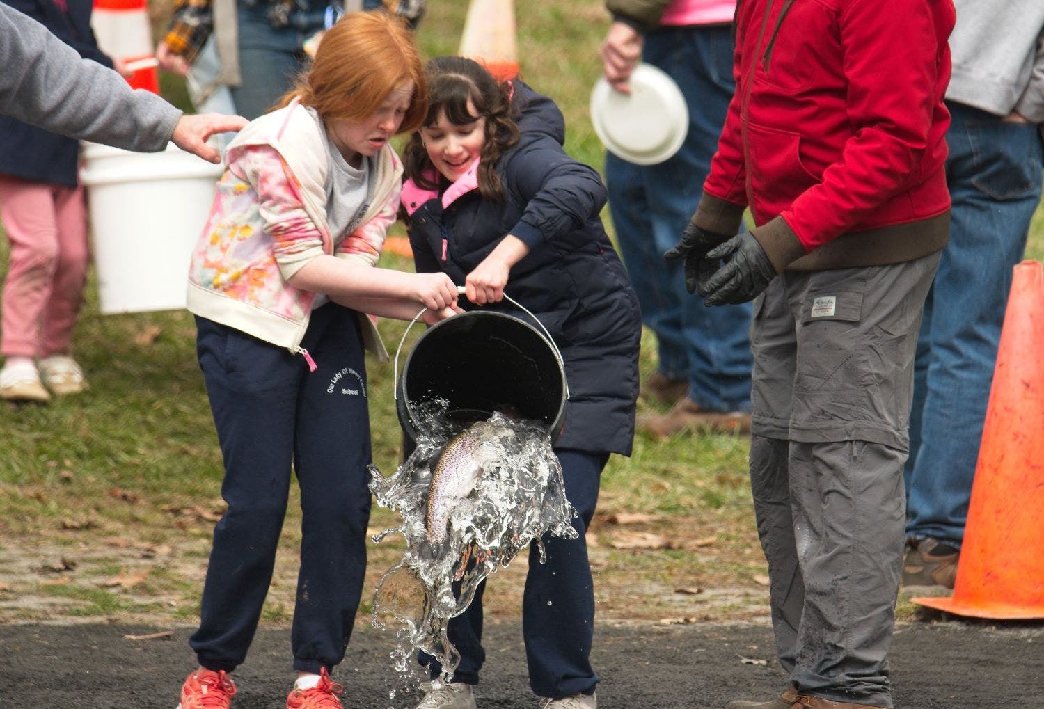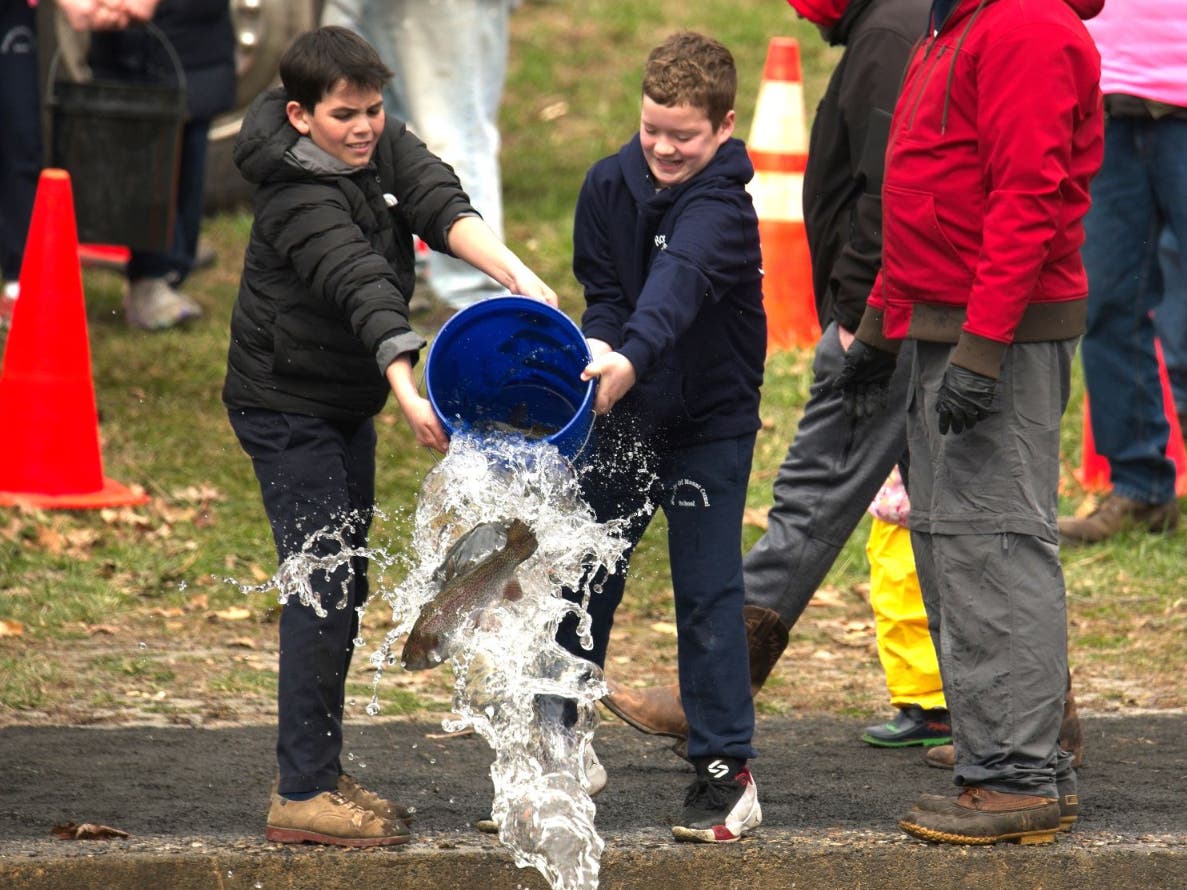 From start to finish, the youngsters, with help from a team of volunteers, managed to transfer more than 1,000 fish from a truck to the waters of the Borough Dam in preparation for the town’s big fishing derby coming up on April 4.