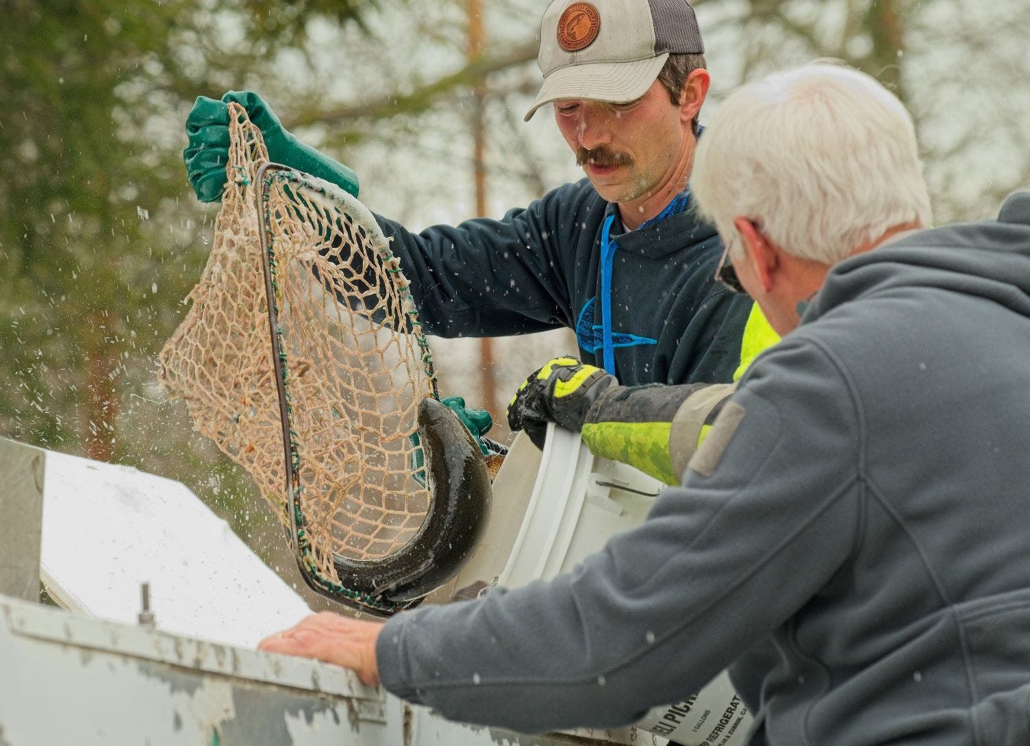 The youngsters, with help from a team of volunteers, managed to transfer more than 1,000 fish from a truck to the waters of the Borough Dam.