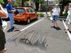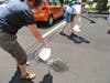 Noonan, who’s also an educator for the conservation district, and teacher Carol Golding each emptied a gallon jug of water – one on the asphalt-paved driveway and the other on the porous pavement.