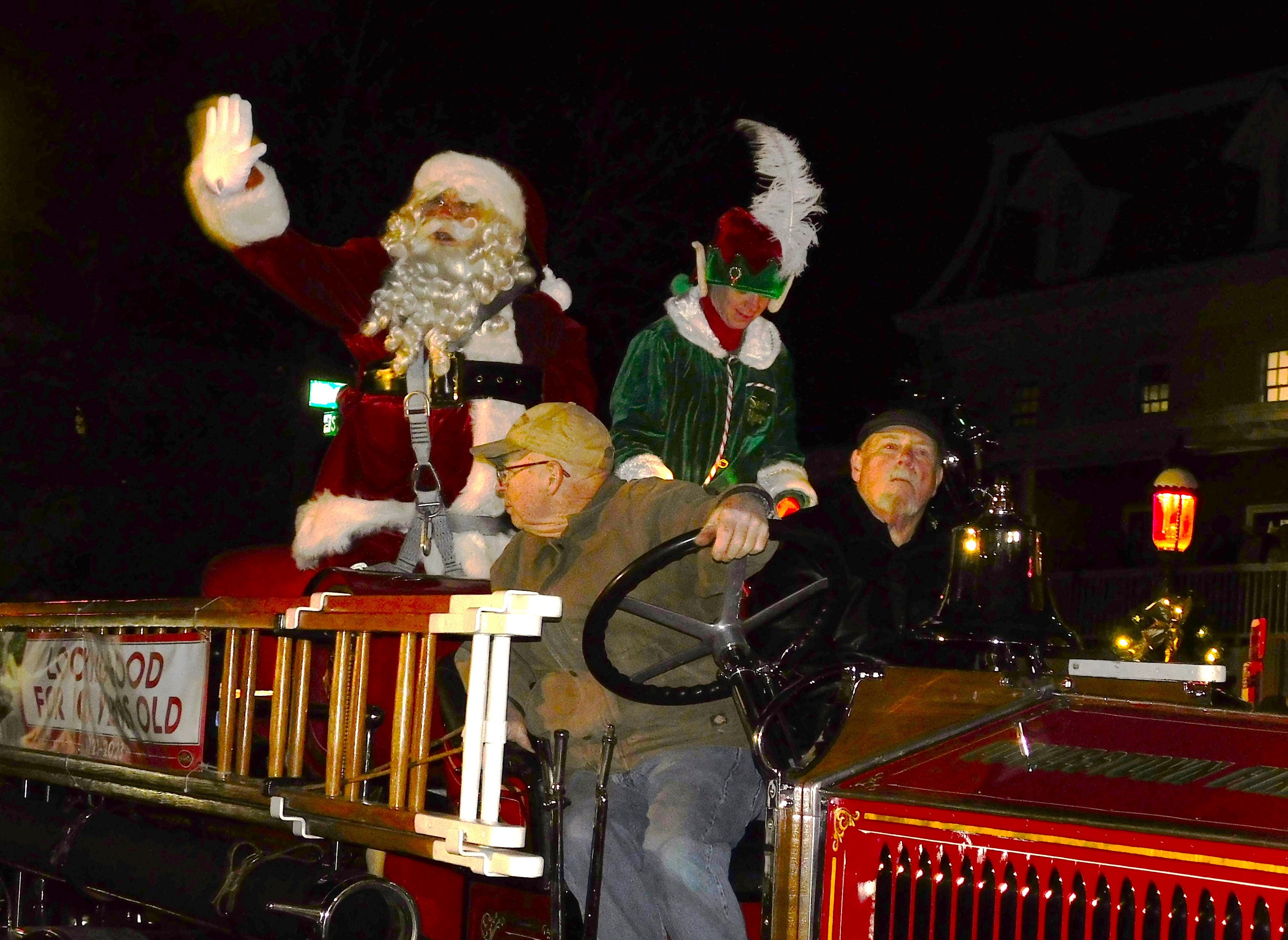 Santa arrived in the heart of Doylestown aboard a century-old antique fire truck driven by members of the Doylestown Fire Company No. 1. The appearance capped off a year long celebration of the Ahrens Fox antique engine, which turned 100 this year.