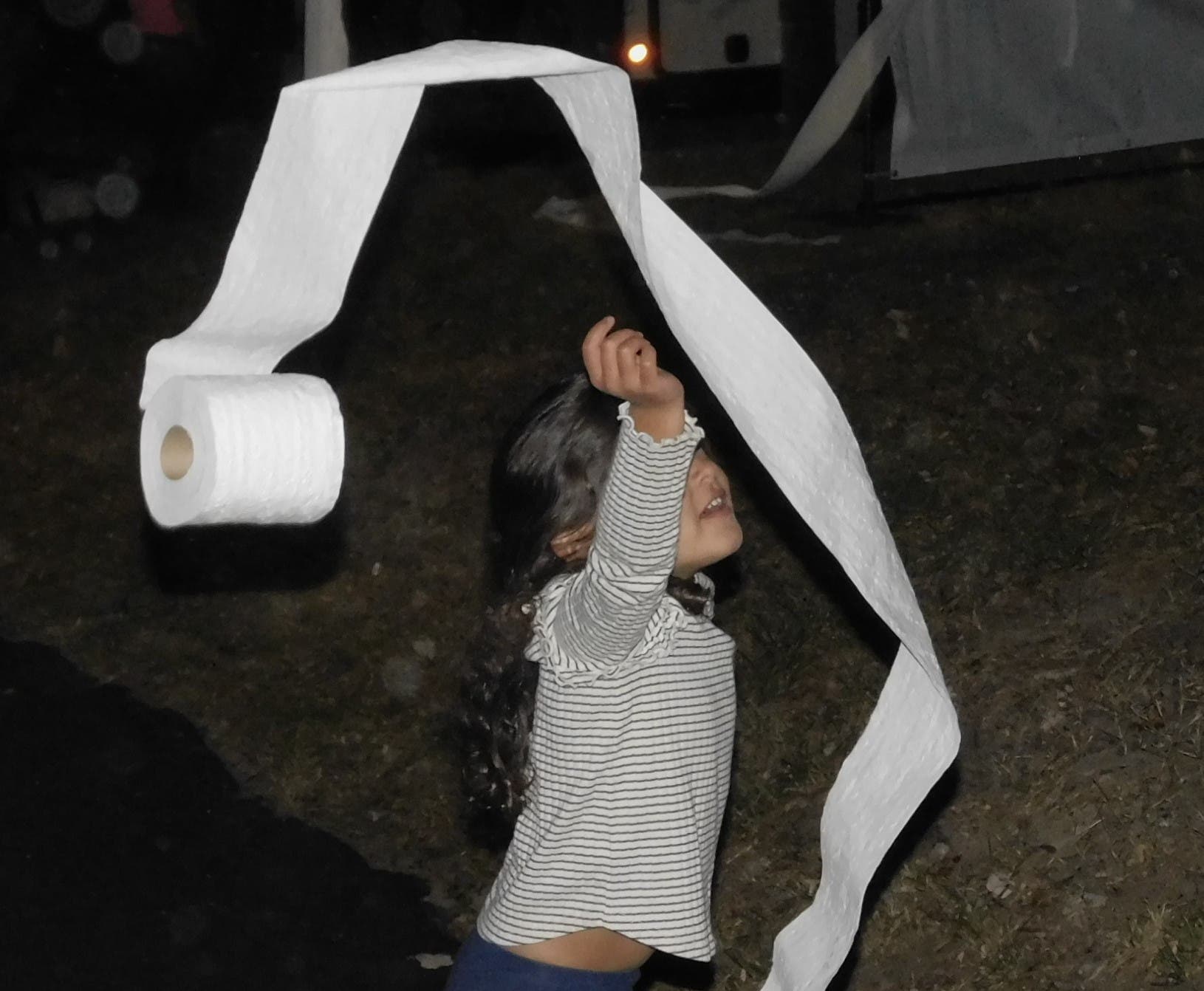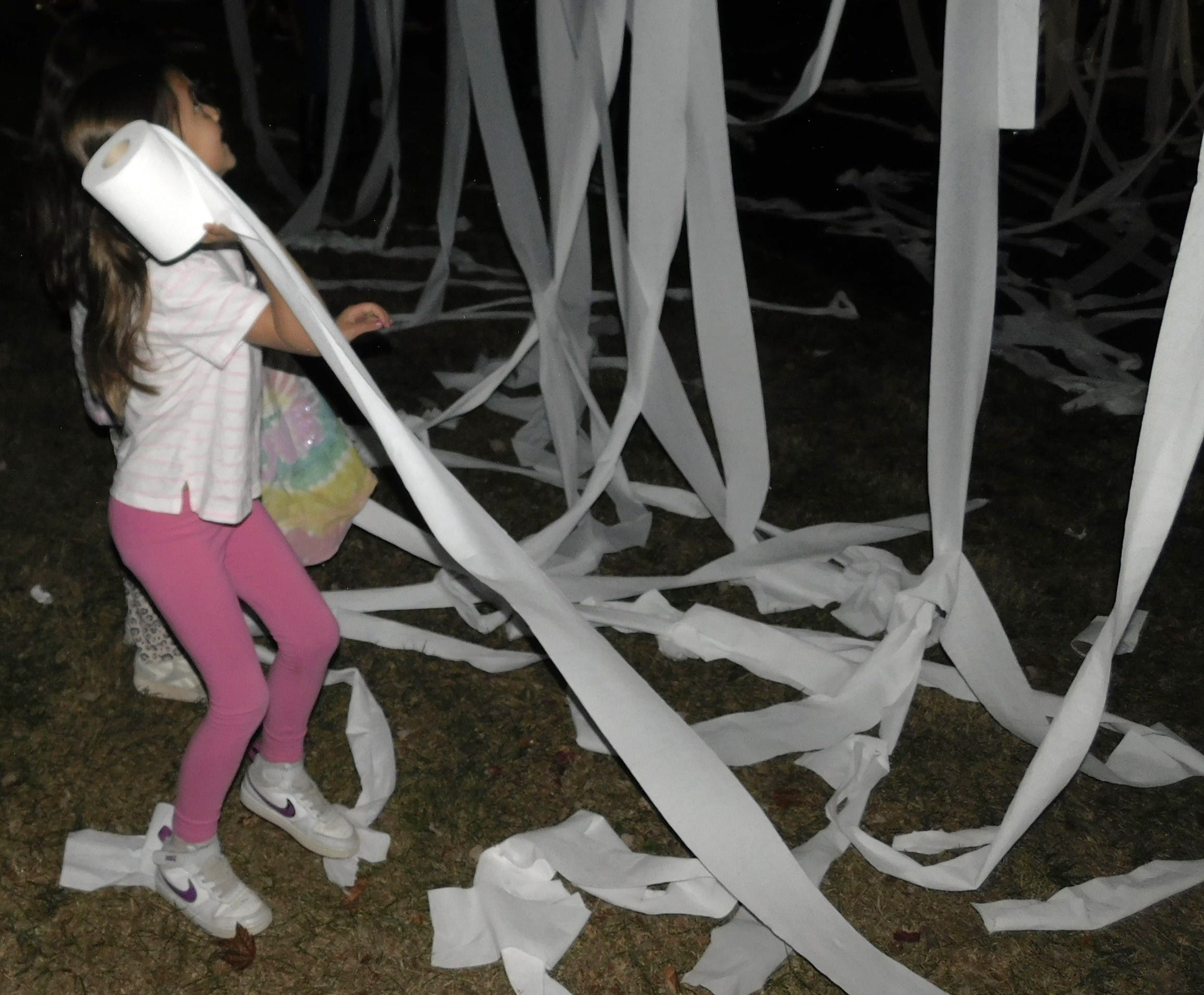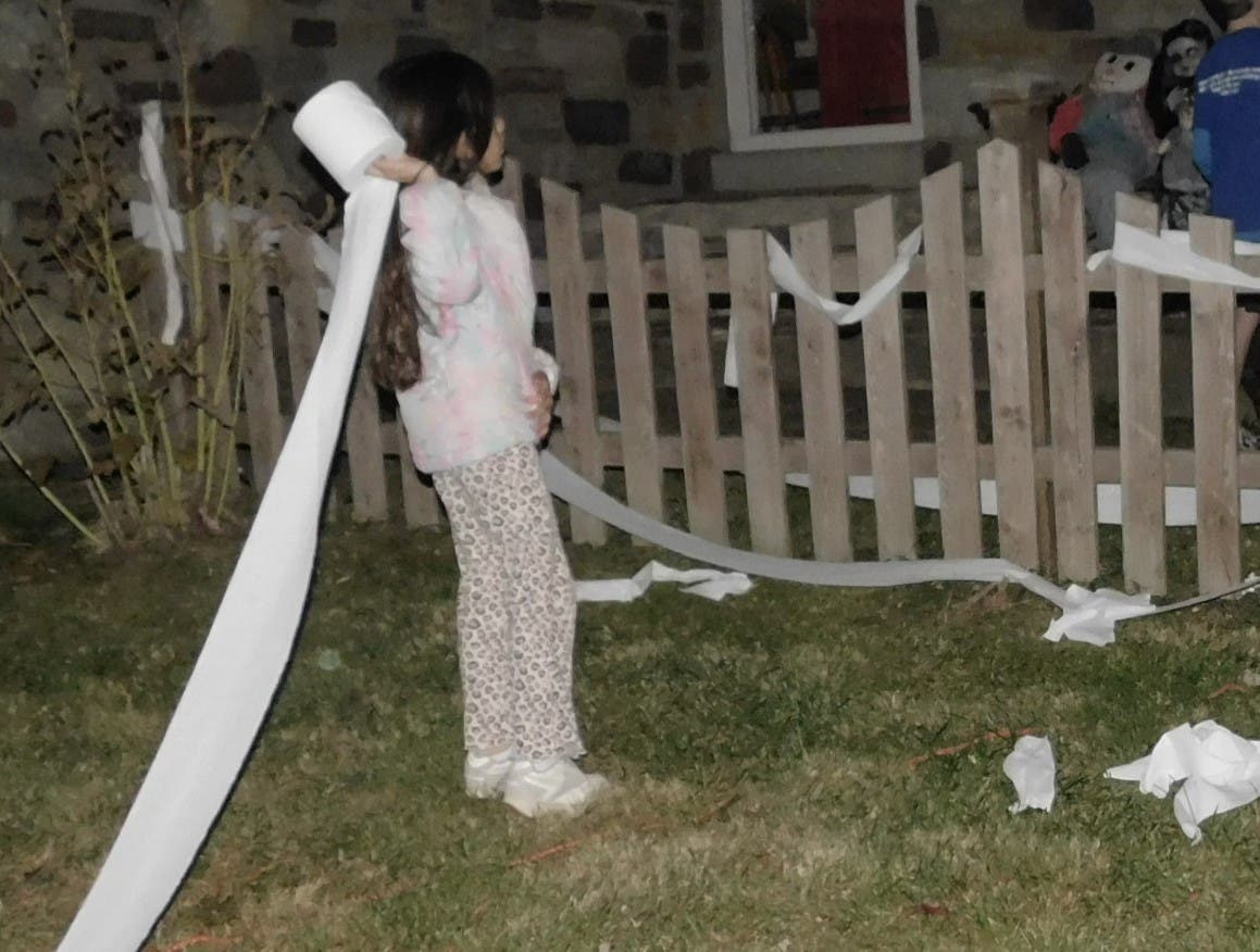 The toilet paper started flying around 6 p.m. on Mischief Night and continued almost nonstop for the next three hours until it covered almost every inch of the property on Oak Drive.
