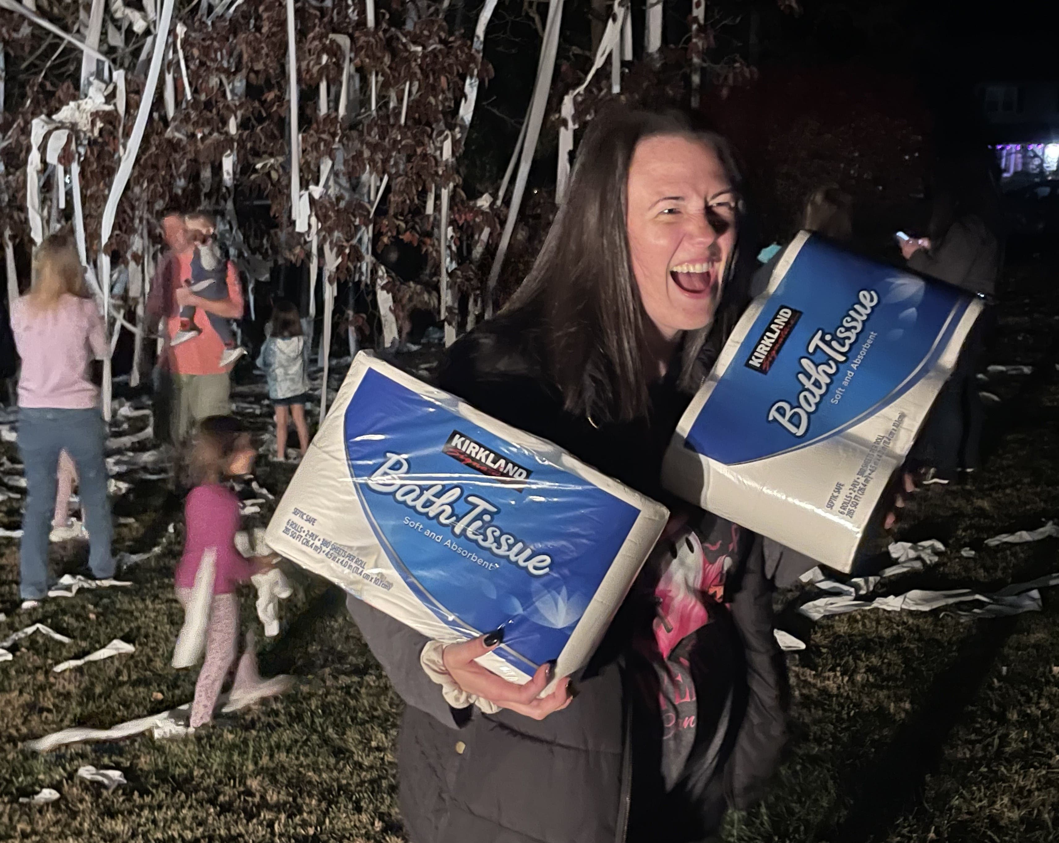 For every roll of toilet paper thrown, the Fenimore’s asked that $5 be donated to Main St., their nonprofit organization supporting breast cancer patients.