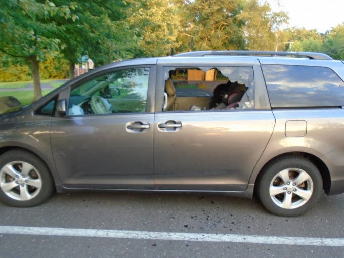 According to police, someone smashed the driver-side rear window of a vehicle while it was