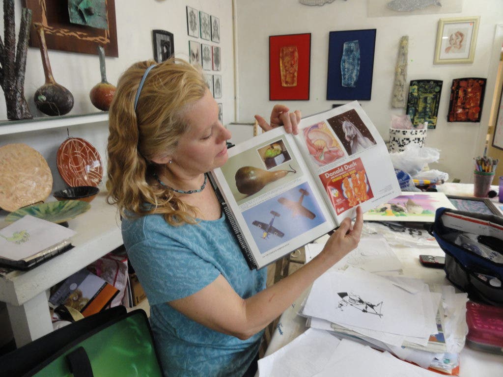 On a Tuesday afternoon, she had two students at work at a table, one painting a landscape, the other drawing the cartoon character The Tick.