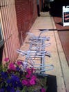 Here is a bike rack hiden from view, not being used in the middle of town. Can we take this bike rack and move it to where it is needed....down at Wawa and McDonalds? It is getting near fall and winter, and if we dont do this soon, it will be all to waste. Please give us permission to move this unused bike rack and put it where it is needed, and end this war with McDonalds.