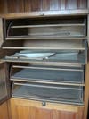 The drawers of the uh...thingamajig slide out; the rod across each drawer is stationary. There are 6 latched doors.
