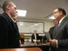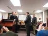 John Piersa and Brett Bindicks are joining the police force. Mayor Sal Panto administered their oaths as Easton Police Chief Larry Palmer and family and friends looked on.