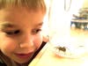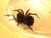 As we examined our specimen, we realized a spiderling had detached itself and was crawling around the base of the jar. Neat! It was so tiny (and just a little bit cute).