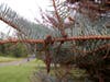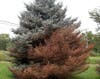 But at this time of year those brown bags begin to appear on some of them. And as time goes on, those beautiful pines and spruces can become brown and completely defoliated.