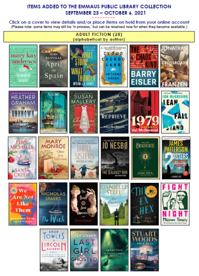 Emmaus Public Library: Just Added: 85 More Items Added Through September 23 - October 6