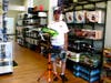Everything! We specialize in remote control helicopters. With most of the hobby shops, that’s kind of a very minor part of their product line. Most of them concentrate on cars. So that’s the biggest advantage -- what we sell. There are no specialty shops like us, especially on the service aspect of things. We carry a lot of things that they don’t, so people can come here, and we have a workbench, so they can do their thing. They buy their parts and fix it; we check it and make sure everything’s working okay. We get a lot of people who drop their stuff off and we service it, and those other places don’t do that, so we’re more like a boutique shop in that sense -- we’re very specialized.Â