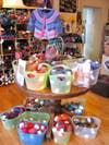 We have a lot of local yarns, hand-dyed yarns, we have free knitting and crocheting help all the time. The other thing is that we just carry different brands than the other yarn shops. There are so many brands and we just carry different ones than everyone else.