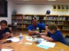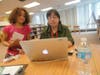 Group Five, my last group of the day is here. Jessenya Davis is interviewing Marec Pun using a reporter's notebook and a Patch pen.