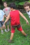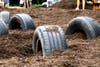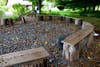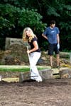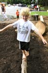 With a minimal budget, the school's heavily encouraged theme of "reuse" was put into action as old rubber tires, tree stumps and mulch from Emmaus Borough's compost center were incorporated to build a formal playground for the children of SGCS.