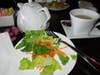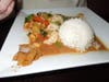 The price of $7.99 was a great deal for the generous portion served on pretty white china – one of 18 lunch specials that come with a small house salad with a yummy peanut sauce dressing every weekday. However, this being my first official sampling of Thai food, I probably should have started with “mild spicy.”