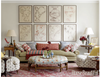 You can also create a salon wall or a gallery wall in your home to present a collection, or a series collection. This makes a visual impact with some punch. It’s also a way to fill a long wall beautifully. You can also remove old, dated frames from canvas pieces, and hang them in tandem. This method pulls your eye up and creates an illusion of height.