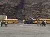 According to the Tribune Review, one bus caught fire, and two surrounding ones sustained damage. No one was hurt.