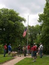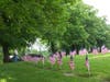 The routine never changed as she drove the circuit: visit her husband's grave, feed the geese, look for deer, tell stories about people who were buried there, and swing past the circle at the top of the hill where the war veterans monument stands, circled by hundreds of little American flags poking up from the ground.