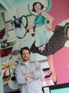 It actually took two nights—15 hours of work—for Bethel Park artist Scott Hunter to fill the wall above the lounge area with a colorful representation of Sugar Café’s retro-modern vibe.