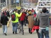 Young and old, college students and retirees, union and non-union workers met this morning at Freedom Corner in the Hill District for a short rally. The crowd then took to the streets, stretching for about four blocks in a march Downtown.